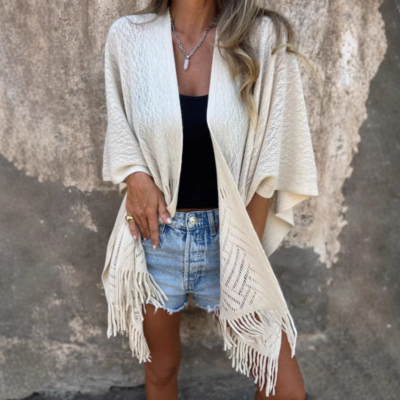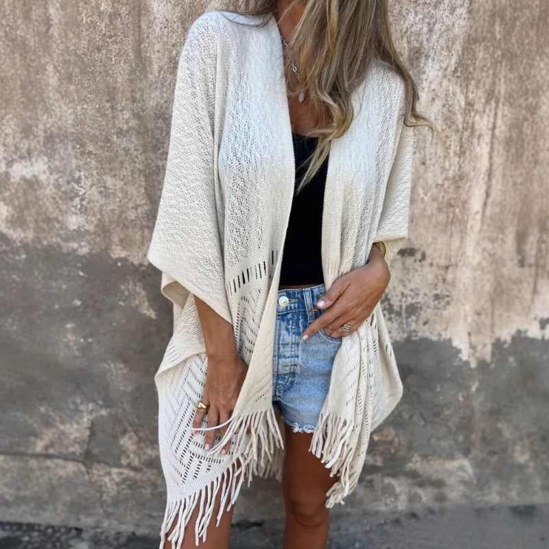 💖Eleganter, einfarbiger, weicher Schal mit Cut-outs und Quasten