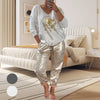2-teiliges Damen-Set: Devil's Eye Goldfolien-Oberteil und Pailletten-Hosen-Set