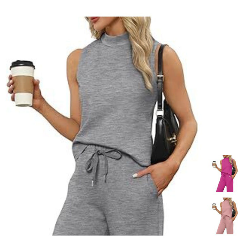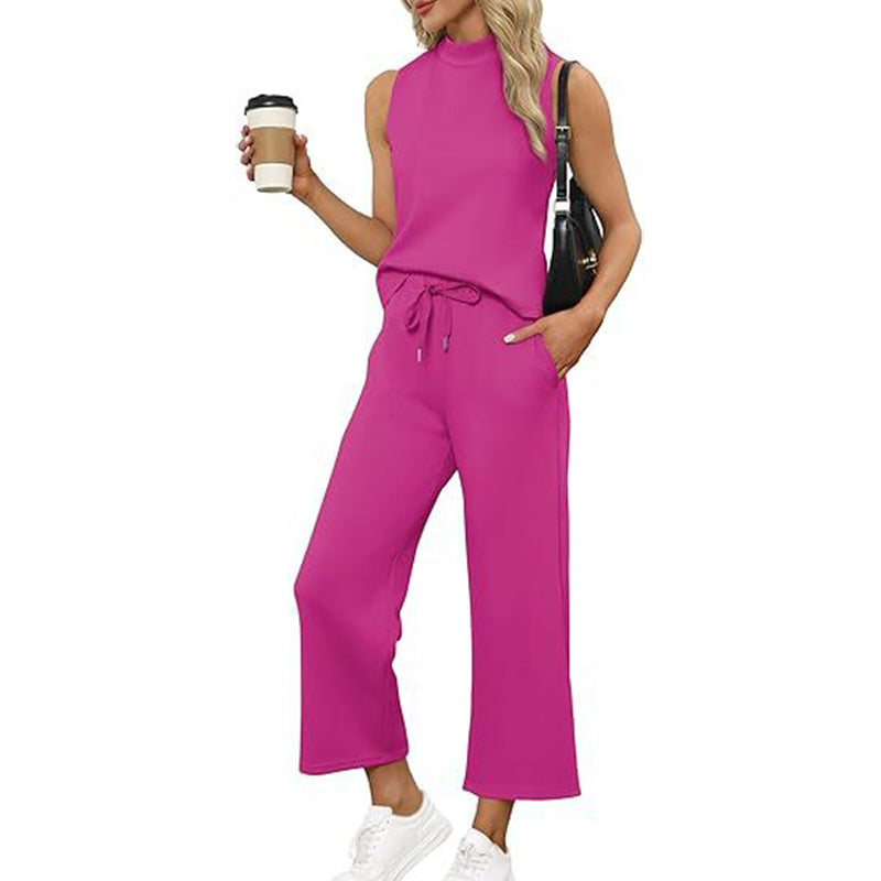 🌸Neu eingetroffen 50 % RABATT💖 Lässiges ärmelloses Damen-Set mit Oberteil und Hose mit weitem Bein, 2-teilig