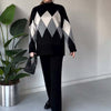 Modisches Color-Blocking-Set aus Pullover und Hose mit Rautenmuster