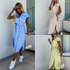 Das Paket enthält: 1 * Lässiges gestreiftes Hemdkleid mit Taillengürtel und Tasche für Damen