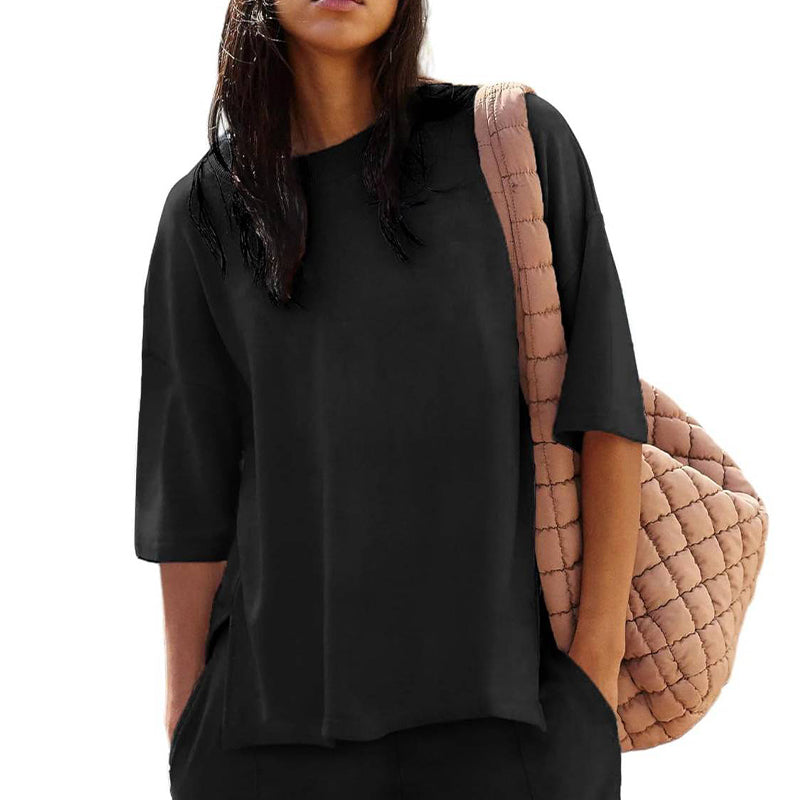 ✨Lässiges 2-teiliges Set aus geschlitztem Top und Shorts für Damen