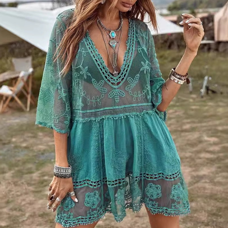 SEXY DESIGN: Dieses Cover-up hat einen tiefen V-Ausschnitt und eine lockere, fließende Silhouette, die Ihre Kurven betont und gleichzeitig einen Hauch von Verführung ausstrahlt. Perfekt zum Faulenzen am Pool oder für Strandausflüge.