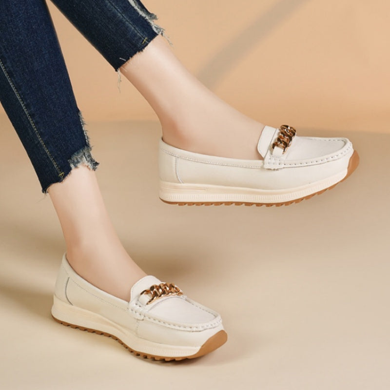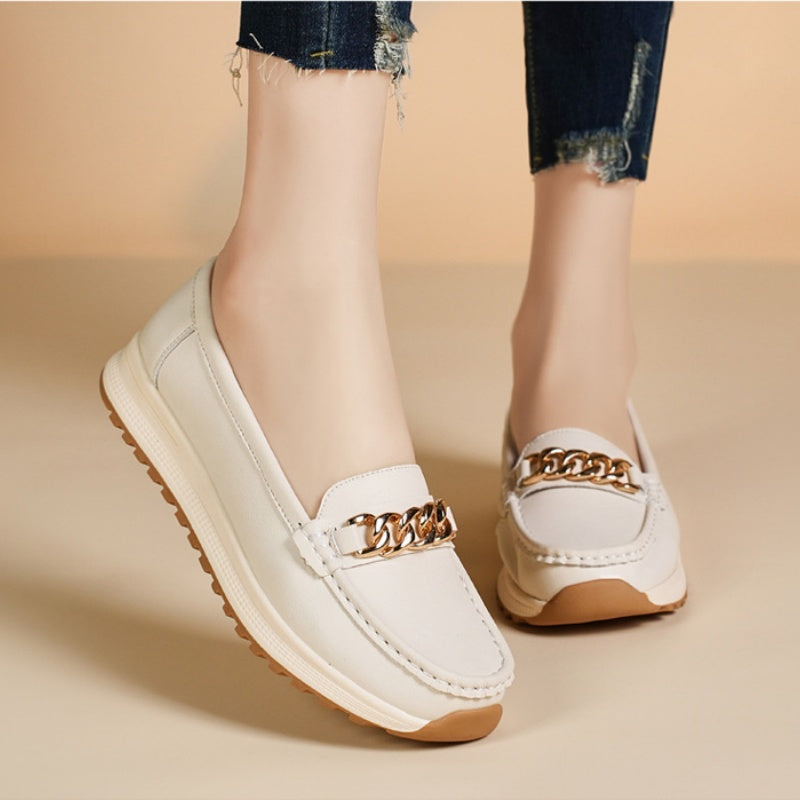 Elegante einfarbige Loafer für Damen mit dicker Sohle