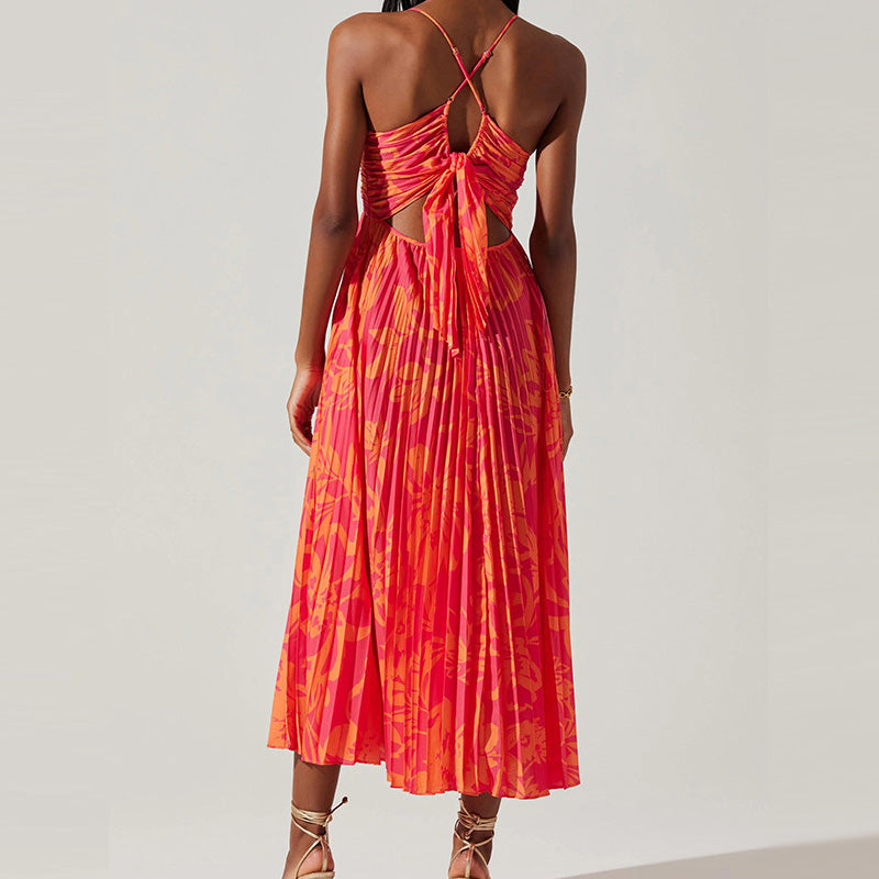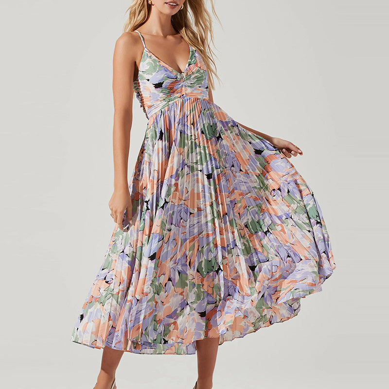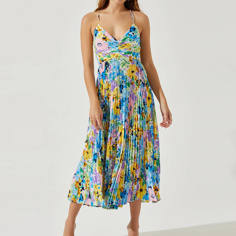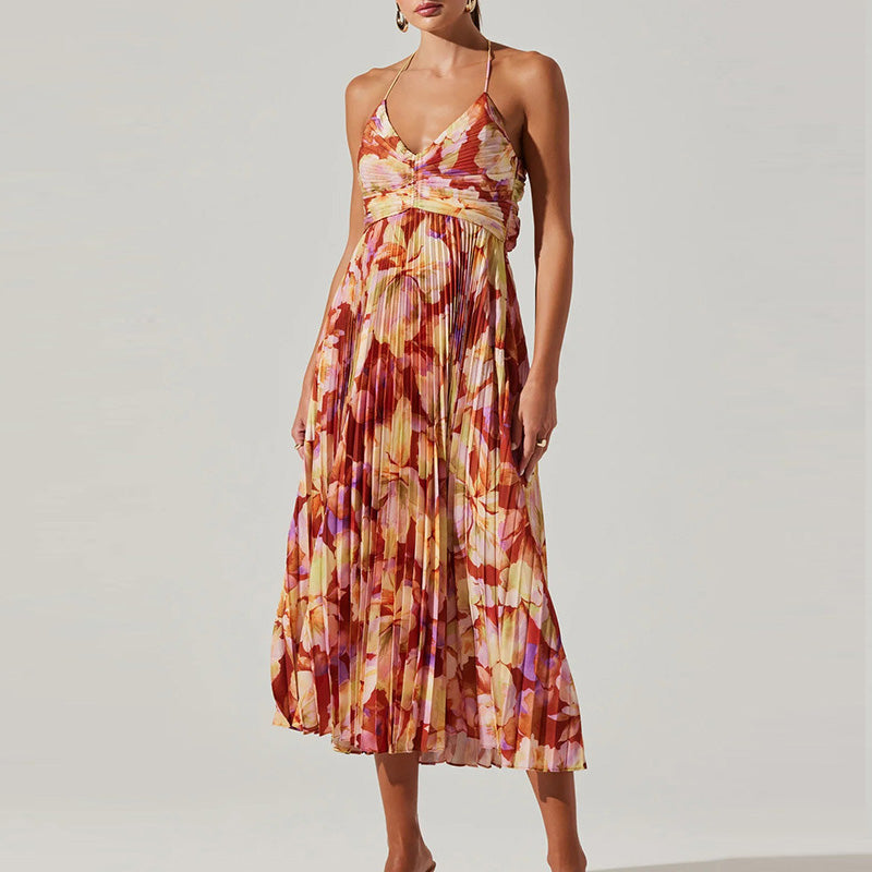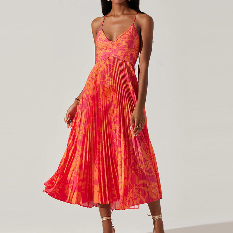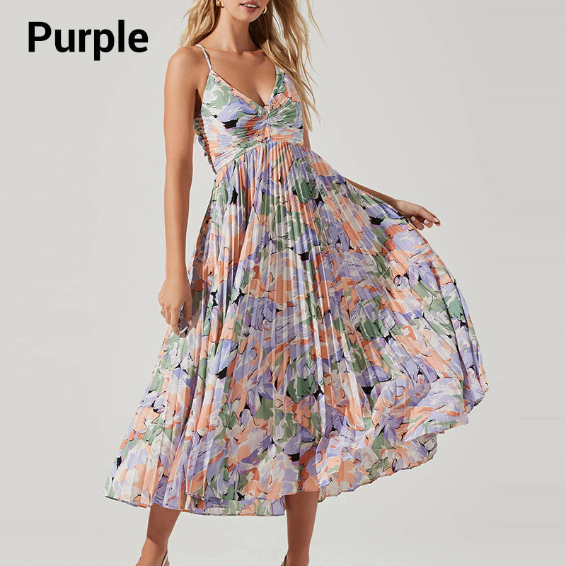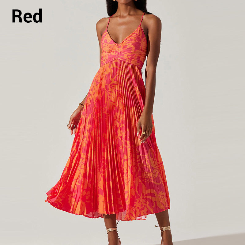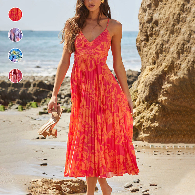 Paket eingeschlossen: 1*Frauen Mode V-Ausschnitt ärmellose bedruckte Kleider
