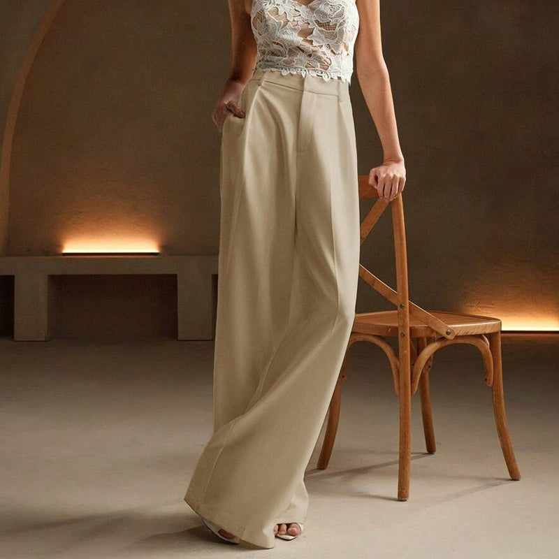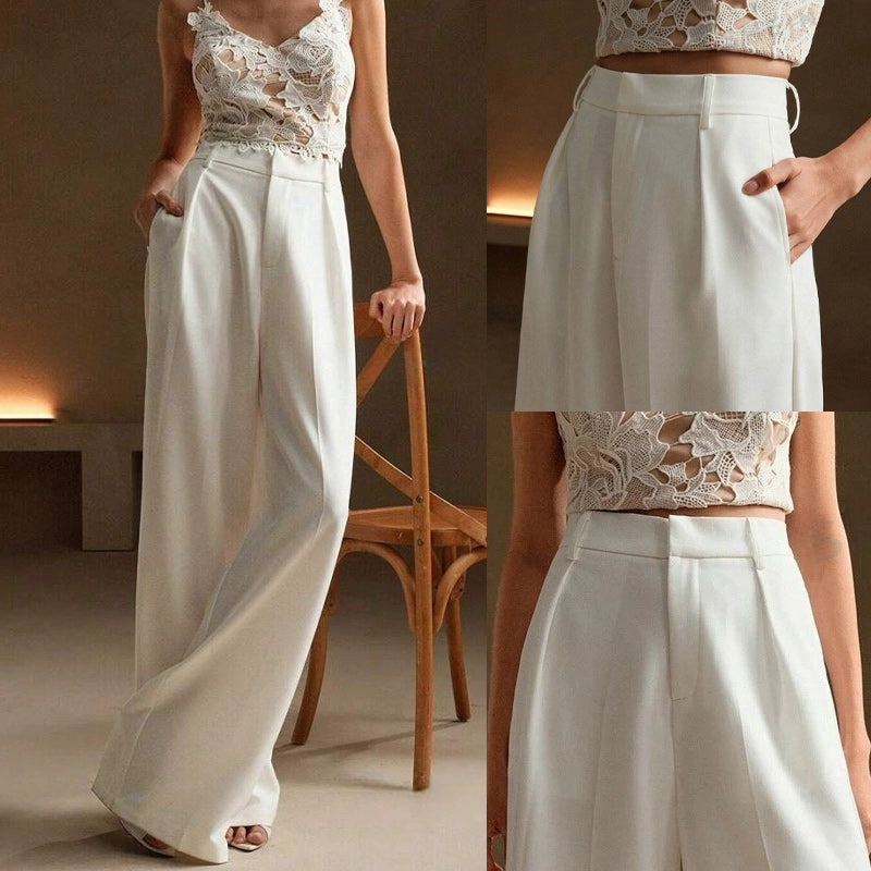 Paket beinhaltet: 1 * Damenhose mit hoher Taille und weitem Bein und Taschen