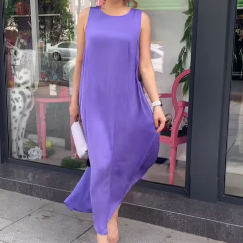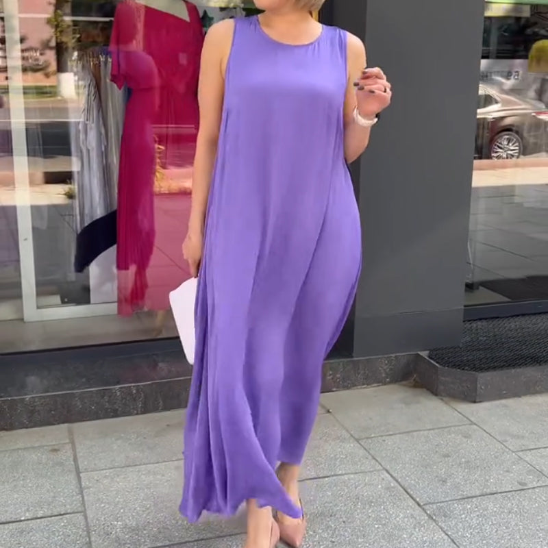 💜Lila ärmelloses Maxikleid mit lockerer Passform für Damen