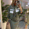 ✅ VERTIKALE SEITENSTREIFEN – Das Kleid ist mit vertikalen Streifen an den Seiten betont, die die Figur optisch strecken und für ein schlankes Erscheinungsbild sorgen. Dieses Detail sorgt nicht nur für visuelles Interesse, sondern betont auch die natürlichen Linien des Körpers. Das Streifendesign harmoniert mit der farblich abgesetzten Jacke und sorgt dafür, dass die beiden Teile ein kohärentes und stilvolles Set bilden.