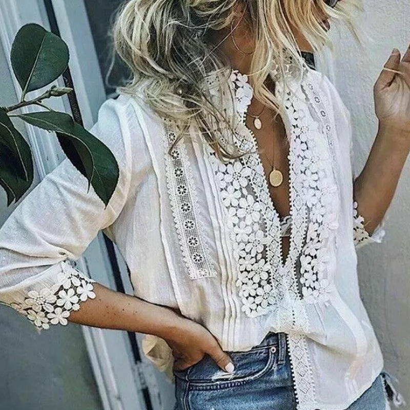 ELEGANTES BLUMEN-SPITZENDESIGN : Zarte Spitzennähte verleihen feminine Weichheit und Eleganz, perfekt für zwanglose Ausflüge oder elegante Anlässe.
