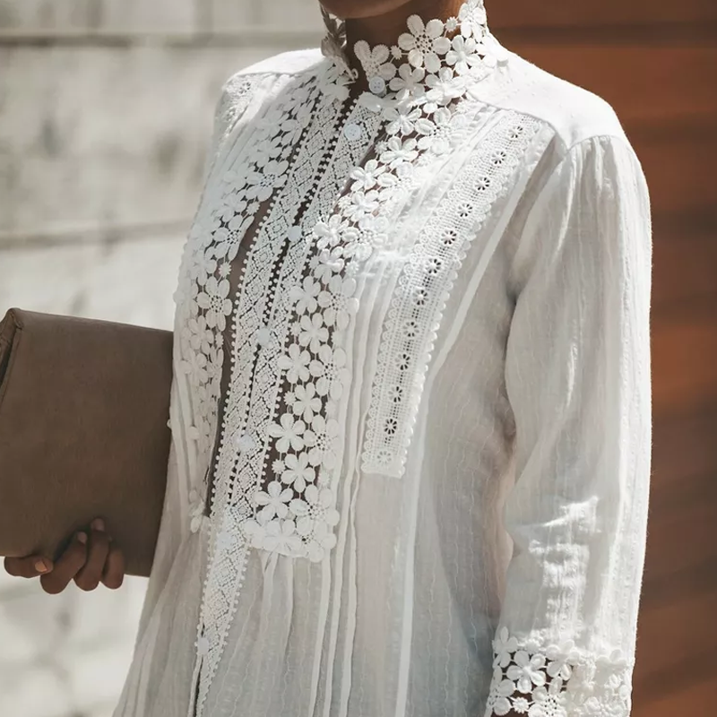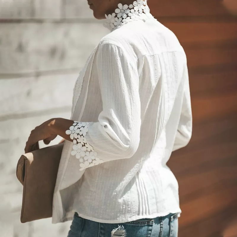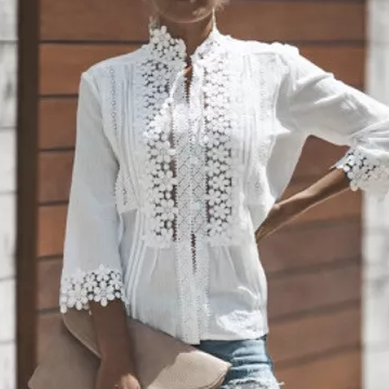 Weißes Patchwork-Top mit Blumenmuster und Spitze für Damen